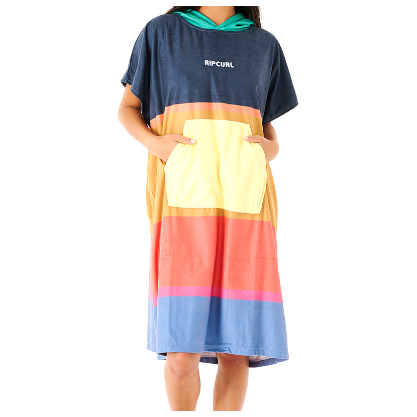 Il telo con cappuccio Surf Revival è un super poncho per il cambio costume dotato di tasche frontali a marsupio, tasche laterali per il cambio e abbinabile ai costumi coordinati.