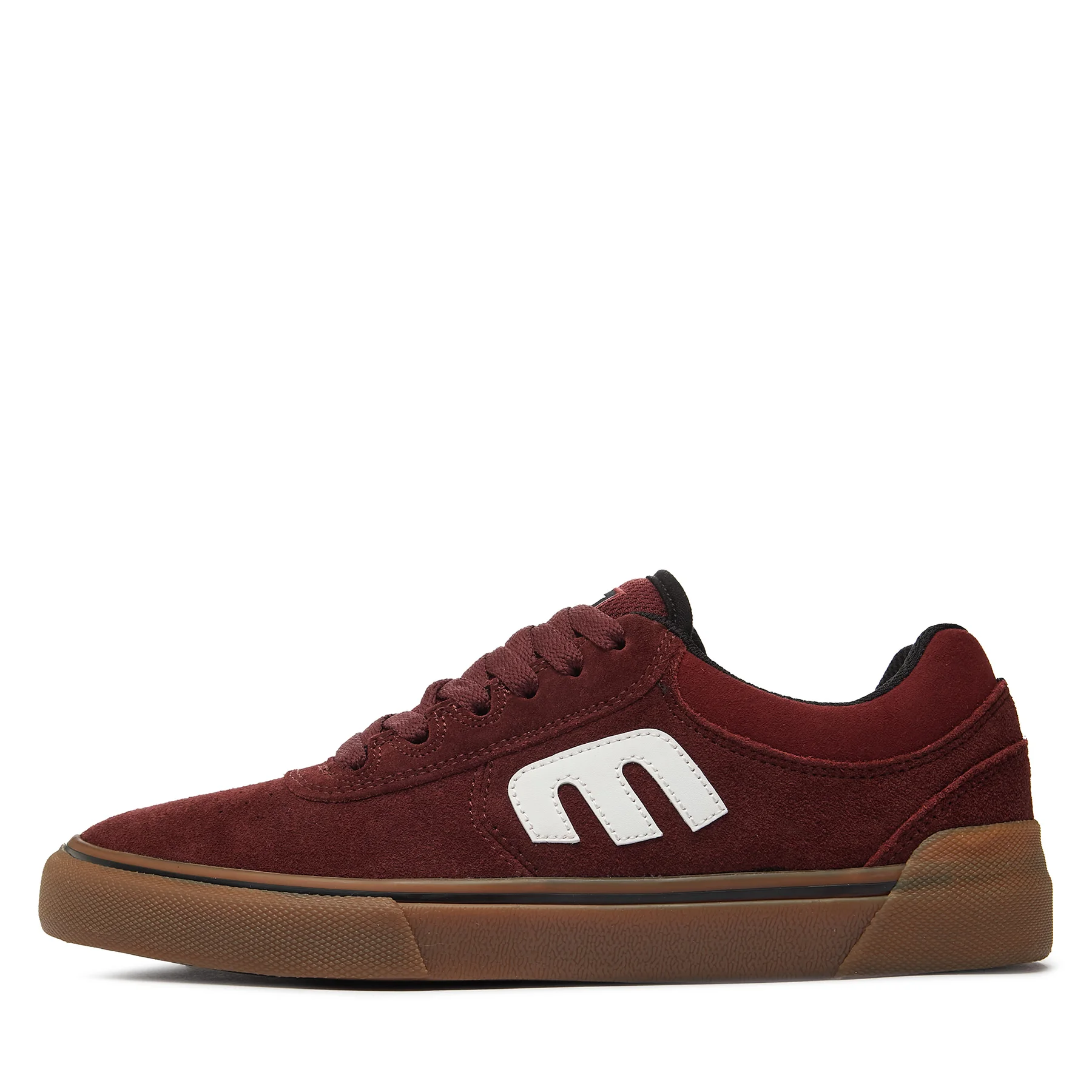 -Tomaia in pelle scamosciata bordeaux, con dettagli bianchi e neri